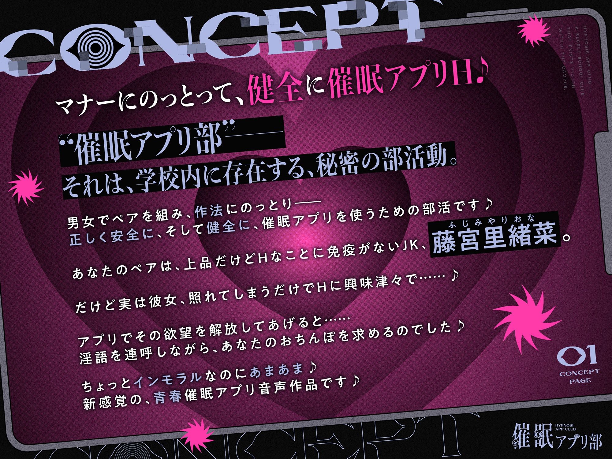合意の上で、実はおまんこ性欲満点の恥ずかしがり屋JKを催●してあまあま淫語おまんこする、‘催●アプリ部’【バイノーラル】 あらすじ