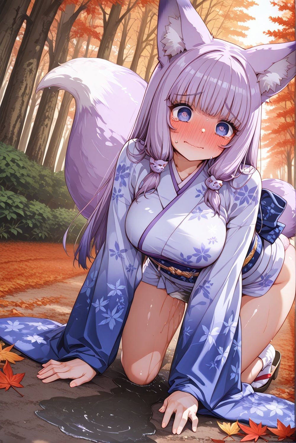 上品な雰囲気を持つ狐っ娘たちのおもらしイラスト集。