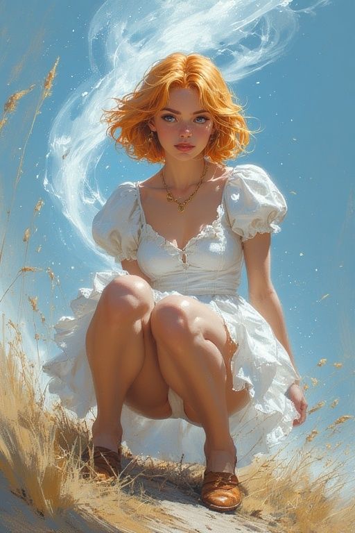昔々、あるところに「もう王子とか無理」って城を飛び出したシンデレラがいた。浮気されすぎて心が折れた彼女は、魅惑のストロベリーブロンドをバッサリショートに切り、白のミニドレスで旅に出た。見た目は完全に「次、誰が私を幸せにしてくれるの?」モードである。そこへタイミング良すぎる北風と太陽が現れ、いつもの「どっちが強いか勝負しようぜ!」が始まった。旅人のコートを脱がせるいつものルールじゃ物足りない二人は、標的をシンデレラに変更。「あの子の服を脱がせた方が勝ち!」と、完全にセクハラ賭博である。