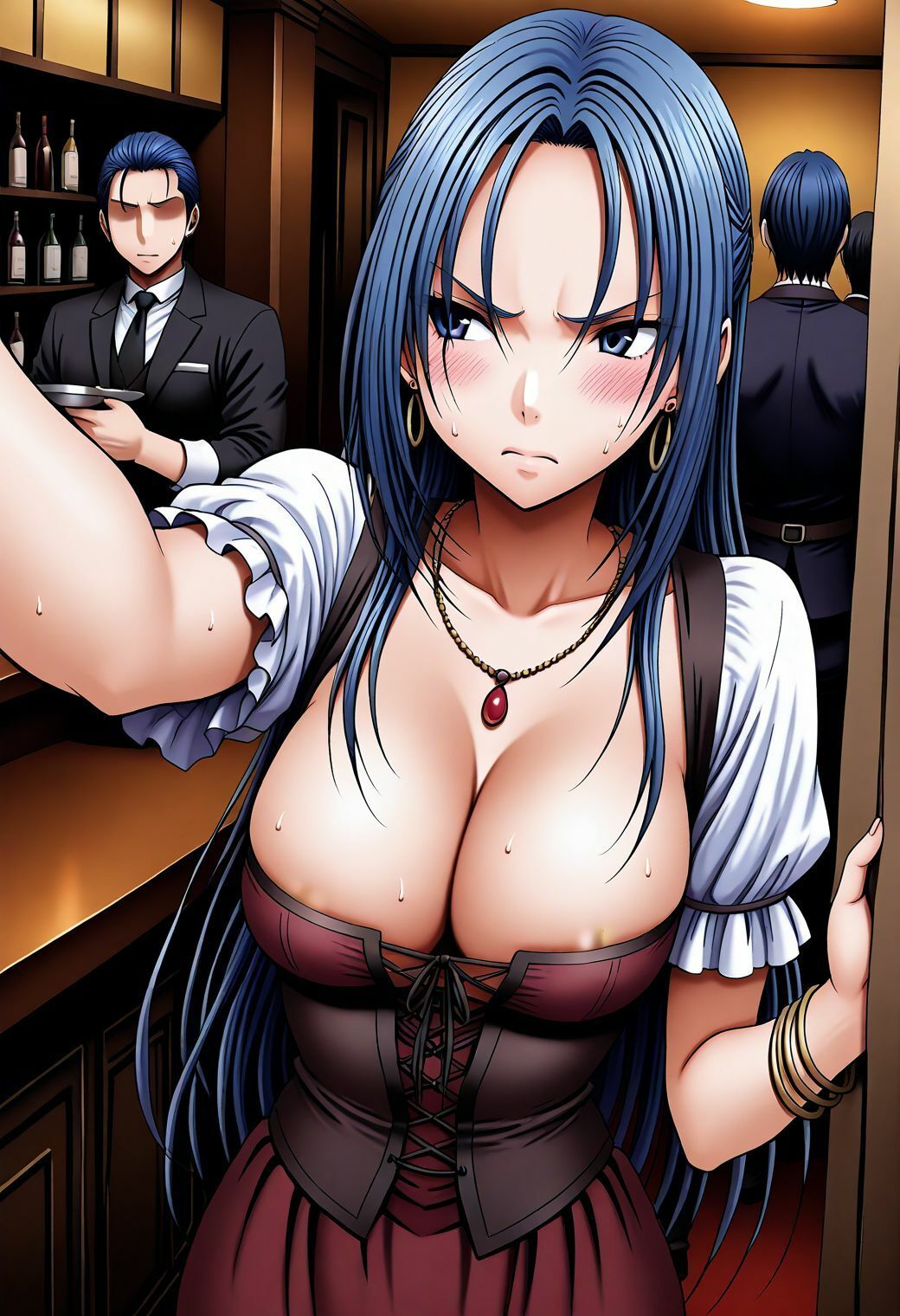 酒場内で痴●され、本番まで至る。その後、お風呂場に場所を移し、徐々に相手のことを受け入れていき、再度本番に至る。