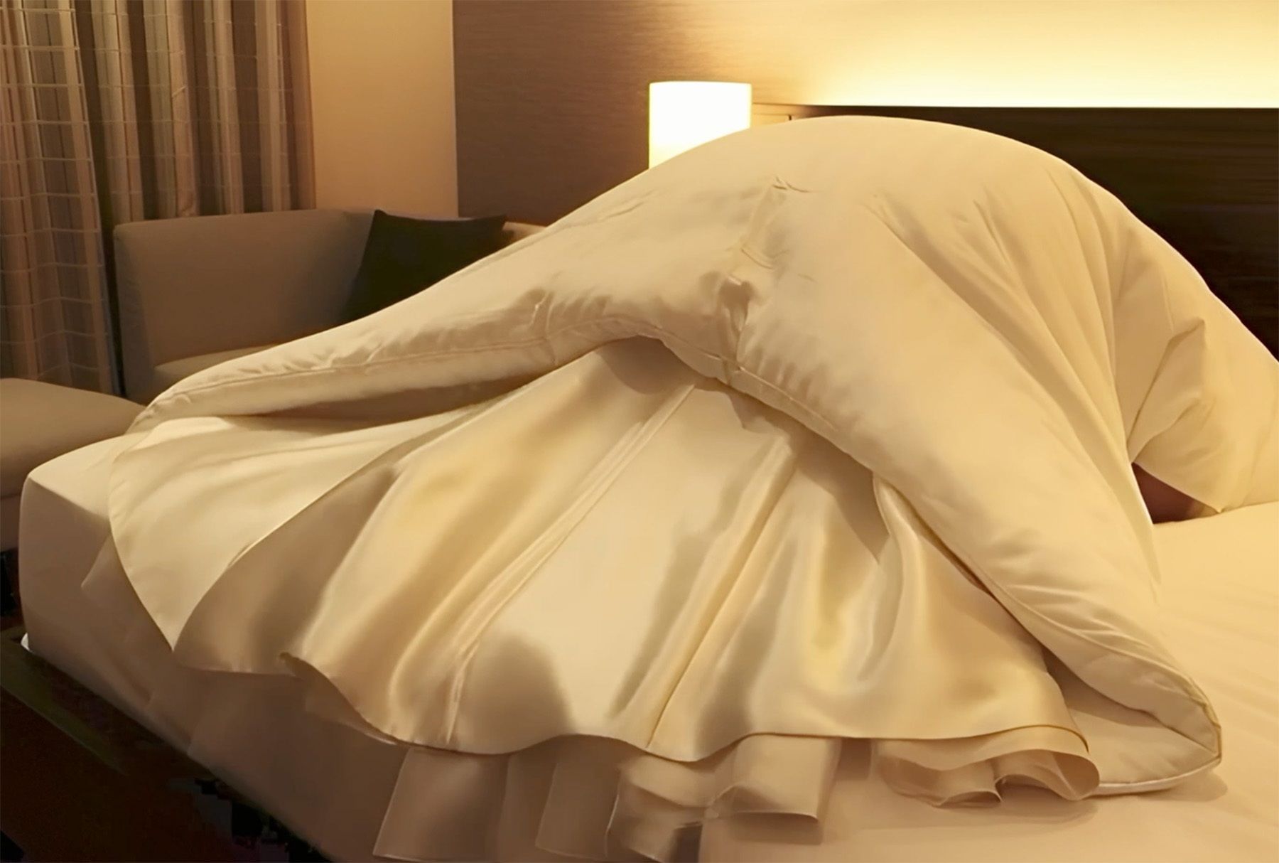 エロく揺れる布団やドレスが想像力を掻き立てます。