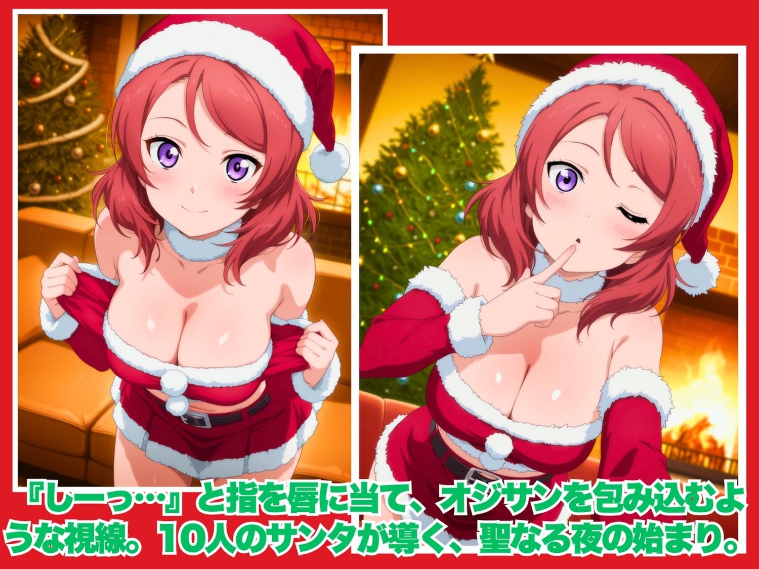 クリスマスイブの夜、孤独なオジサンの前に巨大なプレゼントボックスが出現。中からサンタコスのキャラクターたちが次々に登場し、オジサンを誘惑。一人ずつエッチなプレイを楽しみ、最後はお風呂に入り、泡まみれでもう一発。朝には夢のような一夜が終わり、空のプレゼントボックスとサンタコスのリボンだけが残されていた。