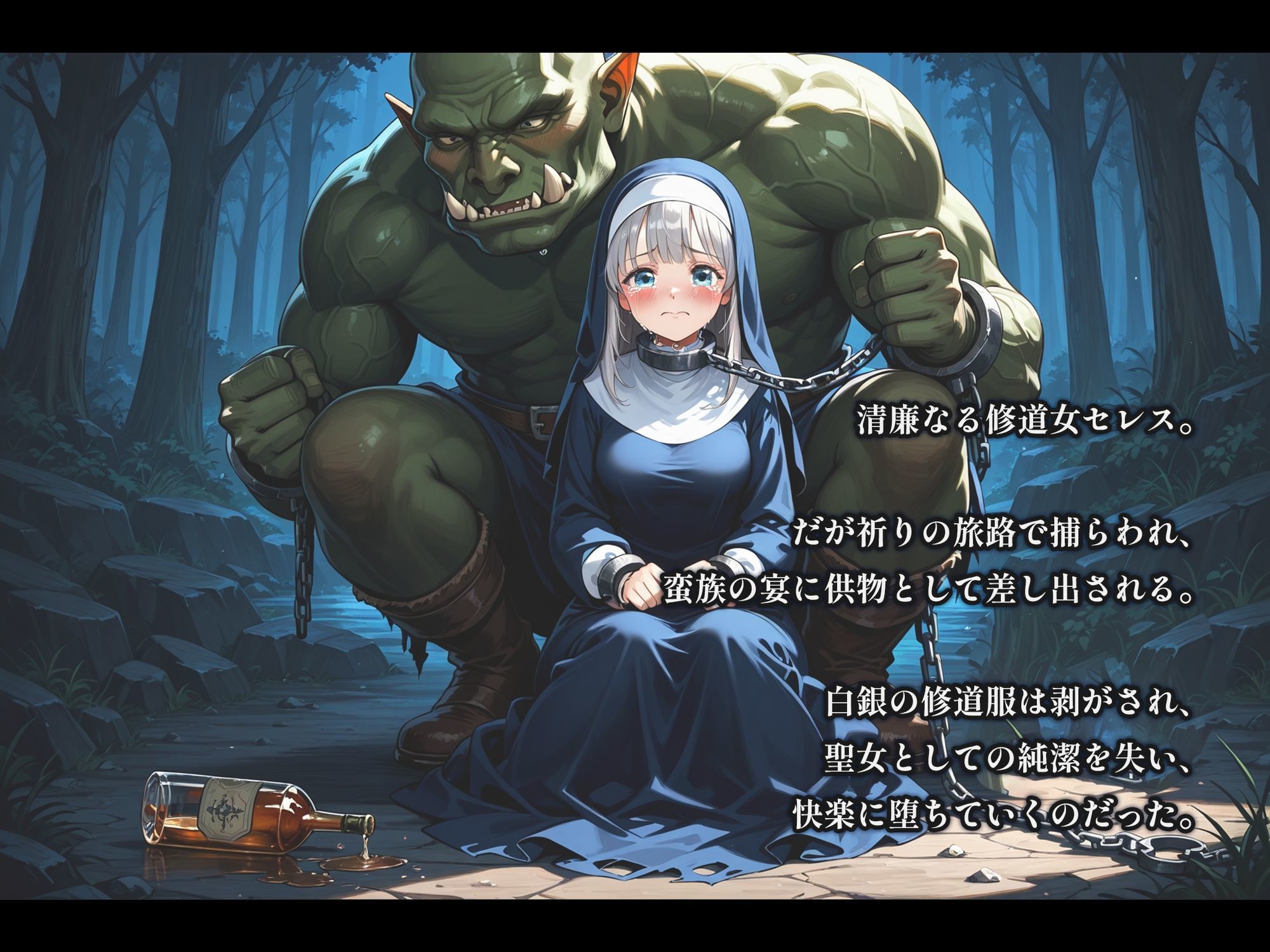 ジャンル: ファンタジー、拘束、辱め、羞恥、寝取り・寝取られ・NTR、監禁、異種姦、男性向け、成人向け、総攻、メス堕ち、快楽堕ち