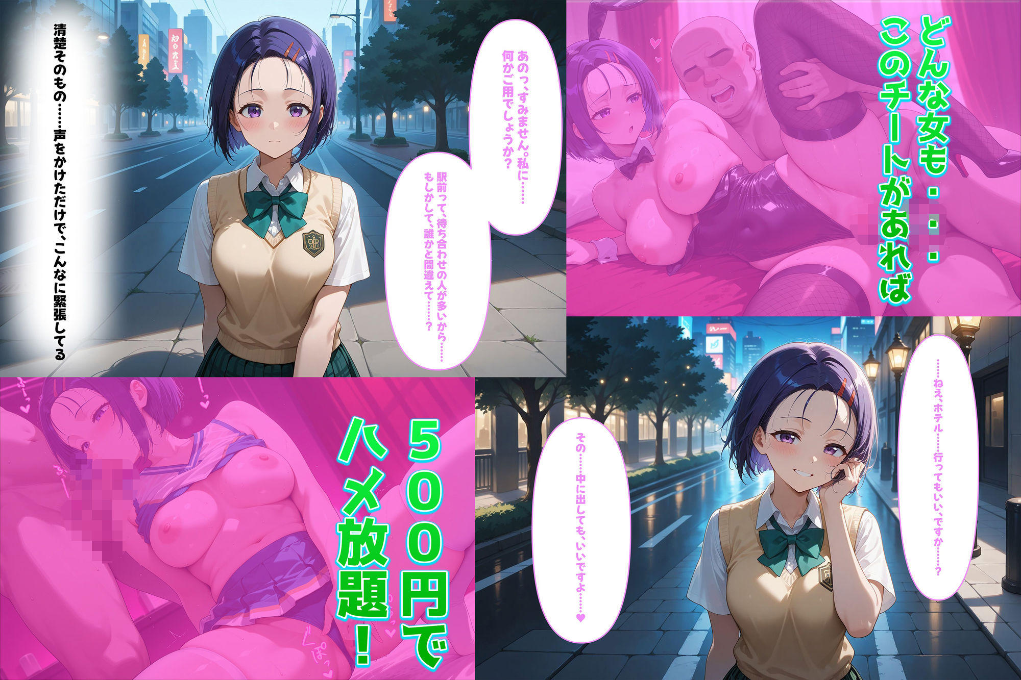 500円でパパ活確定チート〜ワンコインで美少女と即ラブホ!中出し孕ませ確定援交〜[西連〇春奈編][To〇veる][CG500枚] あらすじ