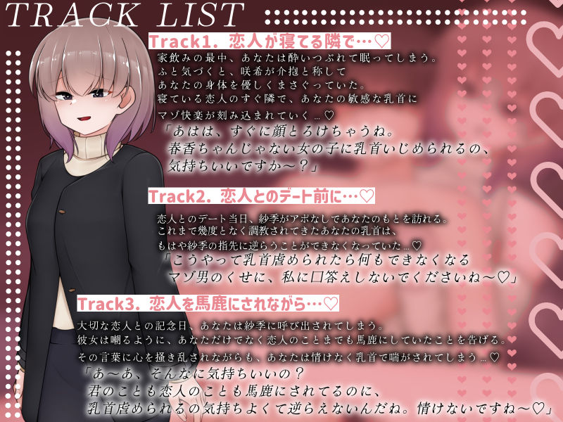 【乳首責め特化】彼女の友人に乳首開発されて逆らえない〜可愛い顔して性格最悪な性悪女の指先で恥ずかしい浮気マゾに調教されました〜【逆NTR】