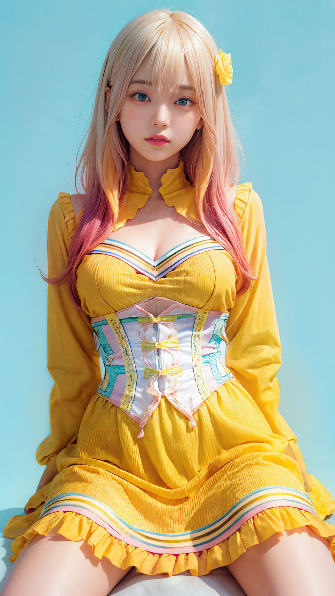 黄色のドレス、ピンク系のグラデ髪をテーマにした14枚です。