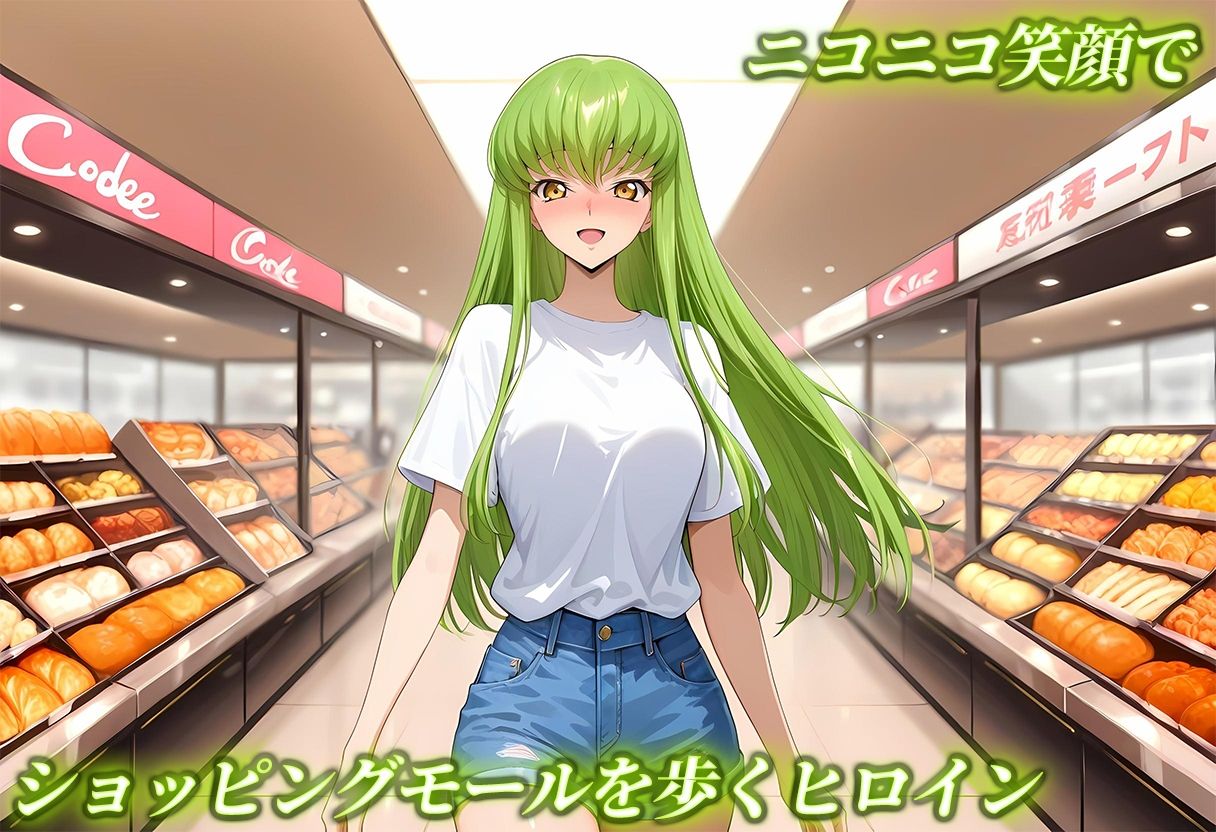 ニコニコ笑顔でショッピングモールを歩くヒロイン。