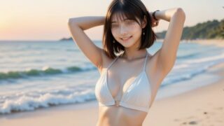 人気エロ同人 腋チラしながら微笑む女神ビキニ美女